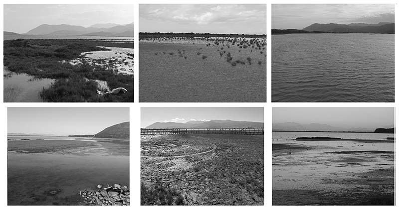 Η λάσπη ως ύλη ποταπή, μιαρή, ως ύλη που θίγει. Μια ύλη που δεν έχει άλλο σκοπό από εκείνον της υποβίβασης. Είναι φορέας υποβάθμισης [Bataille, l’ informe]. Βρωμίζει, λερώνει τη μορφή. Τη μειώνει· της αφαιρεί νόημα και σημασία. Η λάσπη συνδέεται με τη βρωμιά και το ακάθαρτο. Kατά τη δική μας ανάγνωση, αποτελεί φορέα της συνθήκης του ενδιάμεσου, μια συνθήκη που ορίζει και προσδιορίζει το τοπίο το οποίο επιχειρούμε να προσεγγίσουμε. Με αφορμή την κυριολεξία της λάσπης, την αμφιταλάντευση μεταξύ υγρής και στερεής κατάστασης, οδηγούμαστε στην διαρκή παλινδρόμηση νοήματος εντός της οποίας βρίσκεται το τοπίο. Η λάσπη κάνει φανερή τη μεταβλητότητα που το χαρακτηρίζει. Μια ροϊκότητα νοήματος. Και κατ’ επέκταση την αστάθεια του. Το τοπίο παραμένει θολό και συγκεχυμένο. Και μιας και γίνεται λόγος για τενάγη, το τοπίο θα λέγαμε παρουσιάζει μια λασπώδη κατάσταση ως προς τη μορφή και το νόημα. Αναφερόμαστε στο λιμνοθαλάσσιο σύμπλεγμα της Λευκάδας, που βρίσκεται μεταξύ αυτής και της Αιτωλοακαρνανίας, ή μεταξύ αυτής και της ηπειρωτικής Ελλάδας. Η λάσπη συνεπώς αποτελεί την κυριολεξία του τοπίου, την κυριολεξία του έδαφος του.