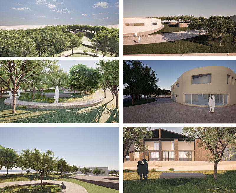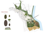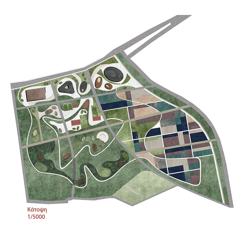 Η παρούσα διπλωματική εργασία ασχολείται με την ανάπλαση της παραποτάμιας έκτασης στην πόλη της Αριδαίας. Η παραποτάμια έκταση βρίσκεται στα όρια της πόλης και αποτελεί κομβικό σημείο καθώς επικοινωνεί με τον ποταμό Μογλενίτσα, την επαρχιακή οδό και βρίσκεται κοντά στην οικιστική ζώνη. Επιπλέον, μεγάλο κομμάτι της χαρακτηρίζεται την έντονη βλάστηση. Ωστόσο, μέχρι σήμερα παραμένει ανεκμετάλλευτη στερώντας από τους κατοίκους της πόλης την ευκαιρία αφενός να συνδεθούν με τη φύση, αφετέρου να έχουν πρόσβαση σeπερισσότερες δραστηριότητες, όπως ο αθλητισμός και ο πολιτισμός. Συγκεκριμένα το κολυμβητήριο αλλά και το κτίριο της κλειστής αγοράς παραμένουν εγκαταλελημμένα για πάνω από 15 χρόνια. Επιπλέον από την πόλη λείπει μια βιβλιοθήκη, καθώς και κινηματογράφος και χώρος εκδηλώσεων. Η στρατηγική σχεδιασμού που ακολουθήθηκε είναι η δημιουργία ζωνών που προσπαθούν να καλύψουν τις παραπάνω ανάγκες. Για το σκοπό αυτό, στην πρώτη ζώνη, η οποία επικοινωνεί με τα ΚΤΕΛ και τα σχολεία δομούνται τα παρακάτων κτίρια: βιβλιοθήκη, ΔΕΥΑ, κολυμβητήριο. Το κτίριο της κλειστής αγοράς που σήμερα ένα μικρό κομμάτι του αξιοποιείται για τα ΚΤΕΛ επαναχρησιμοποιείται και χωρίζεται σε δύο λειτουργίες: ΚΤΕΛ και κινηματογράφος. Σημαντικό κομμάτι της πρότασης αποτελεί η ανάδειξη του φυσικού πλούτου της έκτασης. Για αυτό το λόγο δημιουργούνται μονοπάτια, φυτεύσεις, παρτέρια και ορισμένα υπόστεγα. Στην ανάπλαση περιλαμβάνονται καλλιέργειες, οι οποίες είναι κομβικής σημασίας για την πόλη και τα γύρω χωριά καθώς ο αγροτικός τομέας αποτελεί μεγάλο κομμάτι ενασχόλησης των κατοίκων και γήπεδα ενισχύοντας τον αθλητισμό. Η επιλογή της καμπυλότητας και της οργανικότητας, τόσο των κτιρίων όσο και των διαδρομών επιλέχθηκε για να δημιουργηθεί ένα σημείο ορόσημο στην πόλη και να τονιστεί η φυσικότητα και η ρευστότητα που πηγάζει από αφενός από τον ποταμό, αφετέρου από την πλούσια βλάστηση της Αλμωπίας και λείπει από το εσωτερικό της πόλης. Η έκταση, δηλαδή, αντιμετωπίστηκε ως μια προέκταση του πάρκου “δασάκι”, το οποίο επίσης δεν βρίσκεται στον αστικό ιστό και αποτελεί σημείο ανάπαυσης και πνοής για τους κατοίκους.