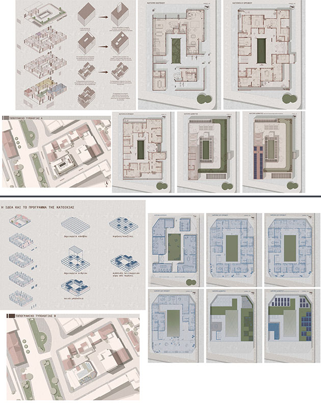 Ultimately, both proposals aim to create a balanced living environment that addresses the personal needs of tenants while fostering a sense of belonging and cooperation. By providing an innovative approach to shared housing, the project contributes to the ongoing discourse on affordable and sustainable living solutions in urban Greece.