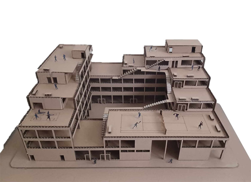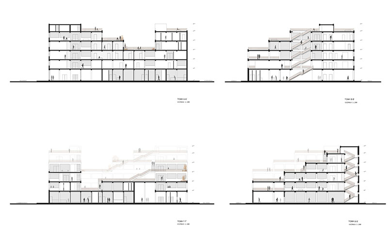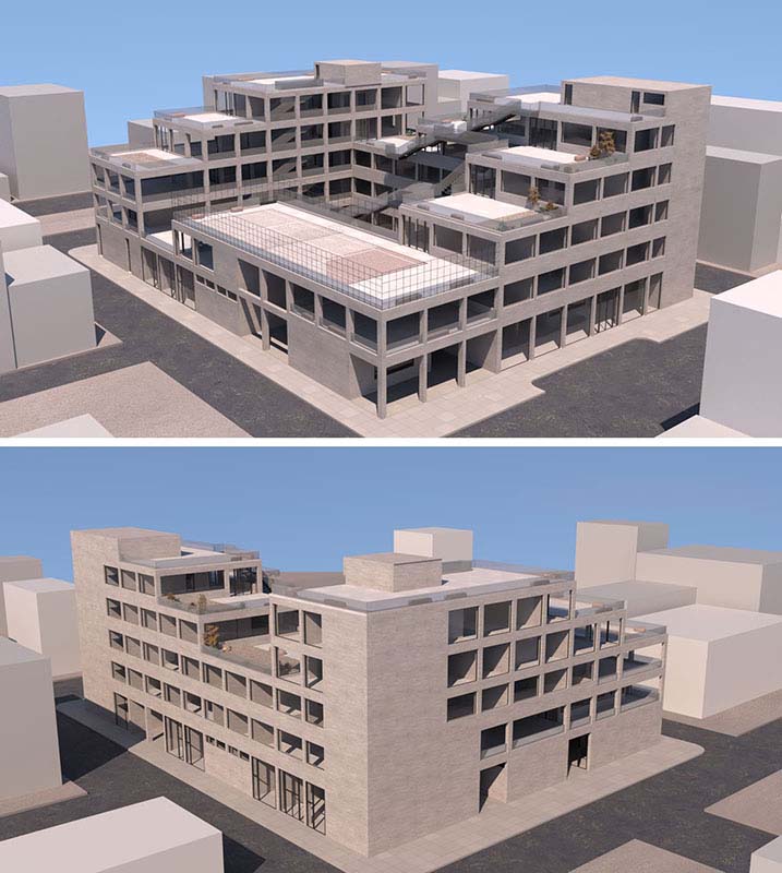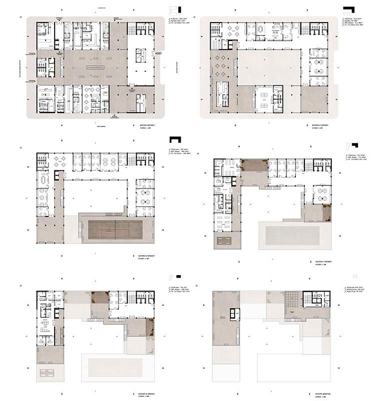 In the centre of Trikala stands the building that houses the Regional Unit of the Prefecture of Trikala, a public building that over the years has presented problems and faced criticism from residents and visitors of the city. While efforts have been made to revitalise the existing building, these are not considered successful. In this diploma project, we propose the reuse of the building's load-bearing structure, carrying out interventions where appropriate and remodeling the spaces within it, while introducing a new conceptual identity, where the structure is not entirely reserved for the administrative functions of the prefecture, but rather restores the memory of the historic market and the commercial activities that evolved in and around it, aiming to create a center dedicated to activities for people, that are rare in the area. The new interventions open the building to the public, with a strong emphasis on the functions that occur on the exploitable terraces, such as a small multi-purpose court for sports activities, wellness facilities or film projections. The main design principles are the creation of multiple levels, an increase in public spaces, easy accessibility for all and the creation of routes, while an effort is made to highlight the intertwined uses, with part of the building dedicated to work and the rest to leisure, intensifying the diversity of the two identities and ensuring that life is maintained on it even after working hours.