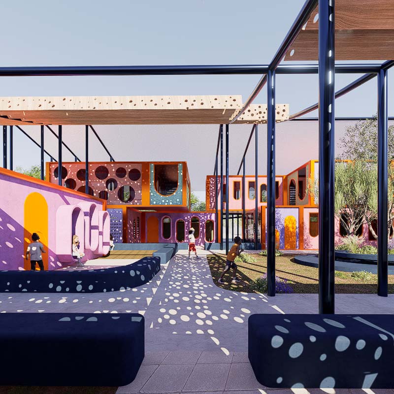 Keywords: Mandatory education, container, facades, playgrounds, folding shade canopy